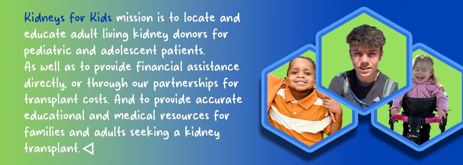 Kidneys for Kids is dedicated to saving children’s lives one kidney at a time. We focus on raising awareness about the importance of kidney donation, especially for pediatric patients. We provide financial support to donor families and children undergoing transplants, and we offer reputable resources for kidney disease caregivers We are a proud member of the Organ Procurement Transplant Network- https://optn.transplant.hrsa.gov/
